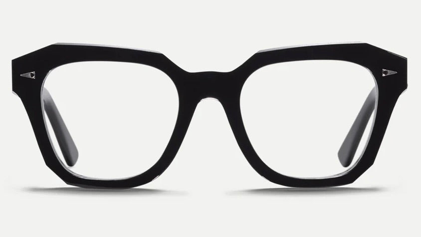 Bold, oversized square frames with a distinctive architectural influence. The frames feature a chunky, masculine silhouette with sharp angles and a strong brow line. The design shows sophisticated contemporary styling with clean lines and a matte black finish. The pronounced bridge and substantial temple pieces create a statement look thats both modern and timeless. The bold geometric shape is balanced by the clean minimalist design, making these glasses suitable for fashion-forward professionals.