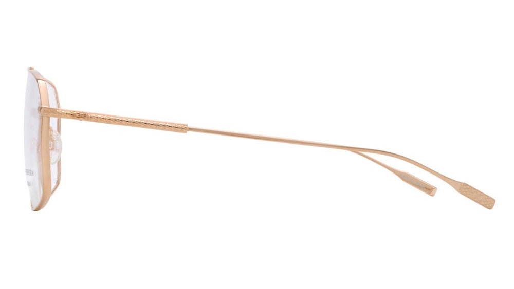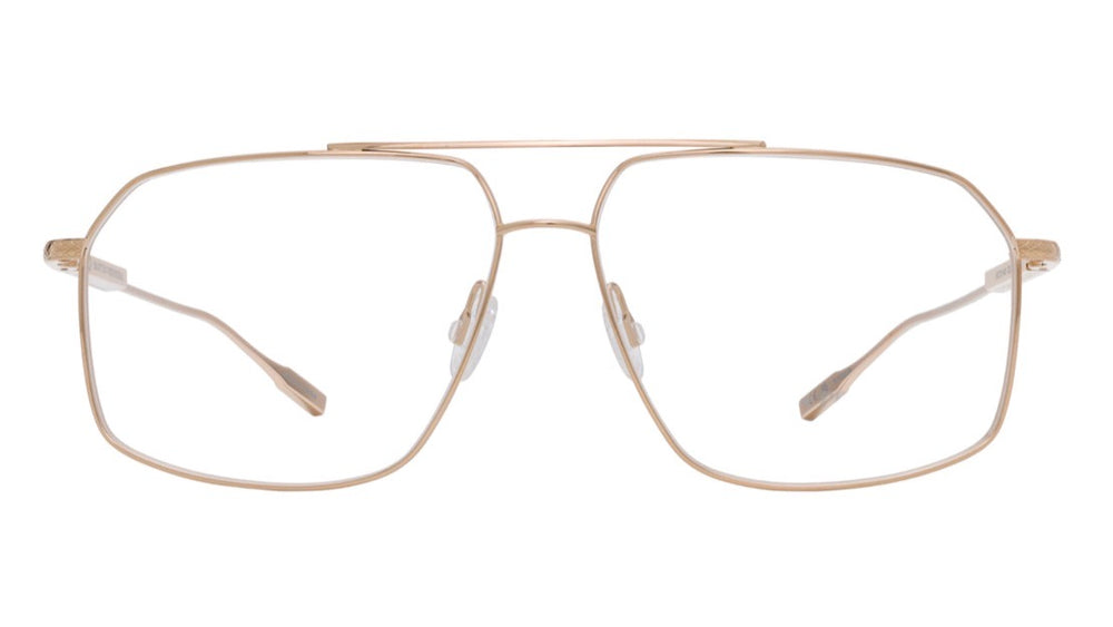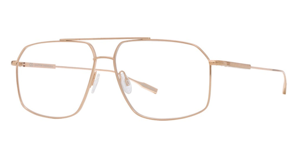 A sophisticated pair of square aviator-style glasses with a luxurious brushed gold finish. The frame features clean geometric lines with a minimalist double bar bridge design. The thin metal construction gives these glasses a lightweight and refined appearance, perfect for both professional and casual settings. The nose pads are adjustable for comfort, and the temple arms are sleek and streamlined, matching the overall elegant aesthetic of the frame.