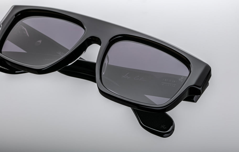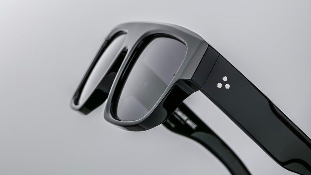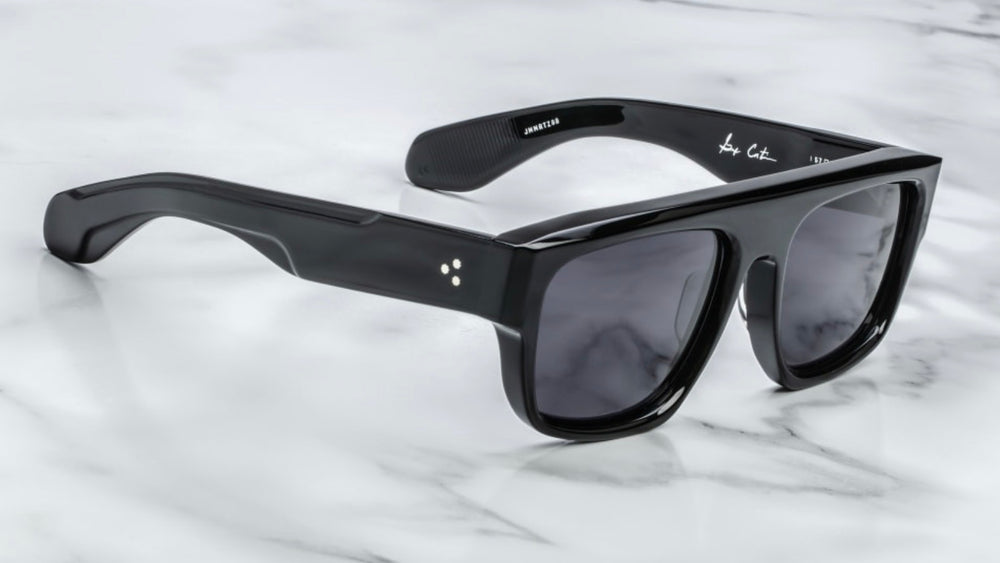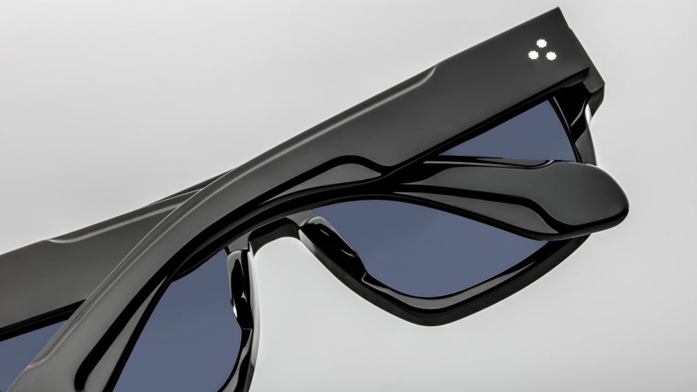 A bold, architectural pair of high-end sunglasses with a distinctive squared-off silhouette. The chunky, substantial plastic frame has a contemporary brutalist aesthetic with sharp angles and a commanding presence. The all-black colorway gives these sunglasses a timeless, sophisticated look while the thick construction suggests premium quality and durability. The wide temple arms and prominent bridge create a confident, fashion-forward statement piece that would appeal to lovers of avant-garde eyewear design.