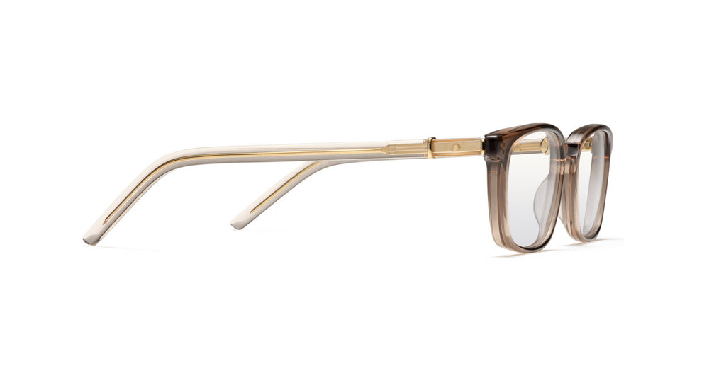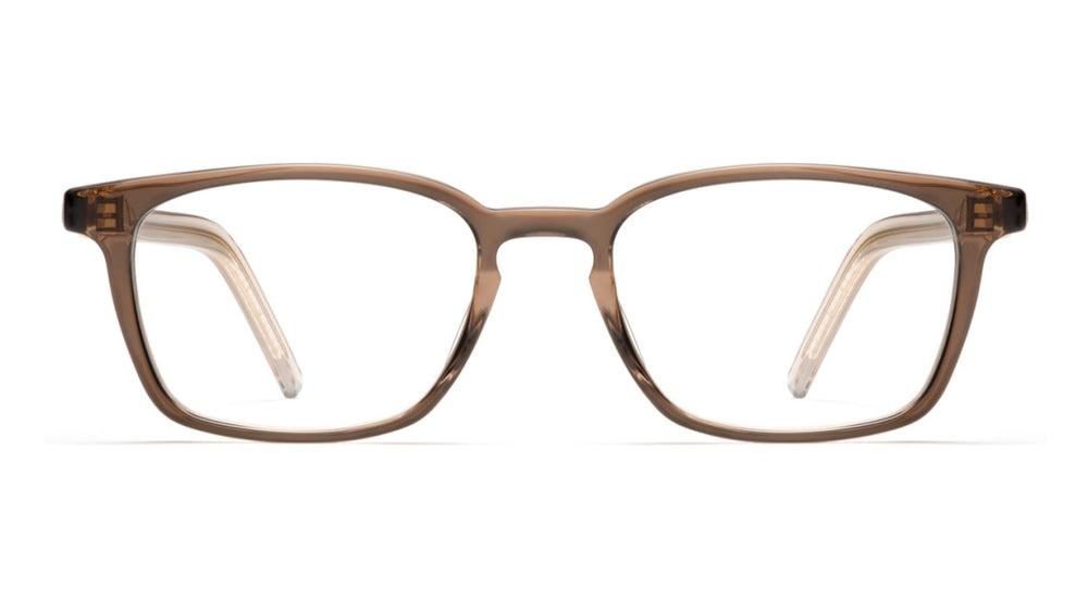 Classic rectangular eyeglasses with a translucent brown acetate frame. The frames feature a medium thickness throughout with clean lines and a professional aesthetic. The design has a subtle gradient effect from darker to lighter brown, giving it a sophisticated and versatile look suitable for both casual and formal wear. The temples maintain the same color and material as the front frame, creating a cohesive appearance.