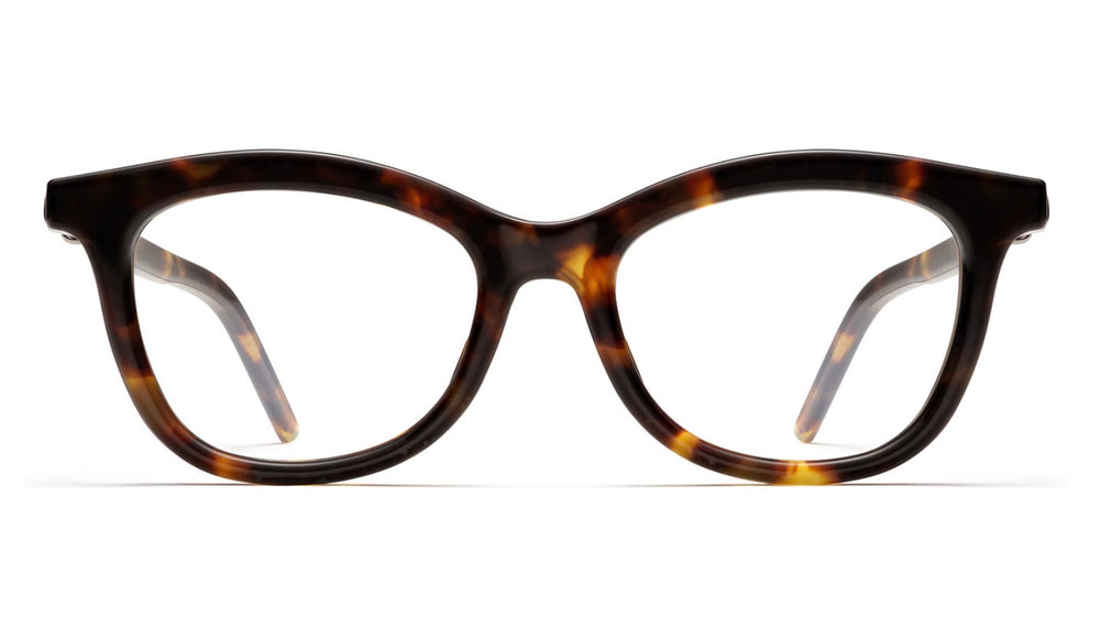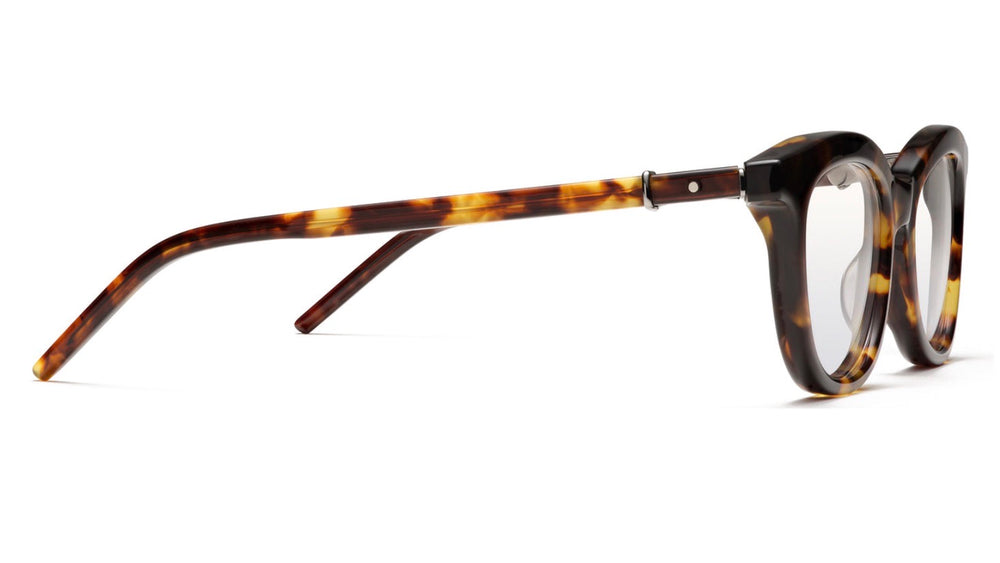 A sophisticated pair of classic wayfarer-style eyeglasses featuring a rich tortoiseshell pattern in dark brown and amber tones. The frames have a substantial build with clean geometric lines and a traditional silhouette that would suit most face shapes. The tortoiseshell pattern varies in intensity throughout the frame, creating an elegant depth and dimension thats particularly noticeable in the front-facing view.