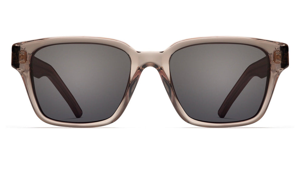 These stylish square sunglasses feature a contemporary transparent grey acetate frame with a clean, minimalist design. The frames have a sophisticated matte finish and substantial temple arms that complement the medium-weight front. The dark grey lenses provide excellent sun protection while maintaining a sleek, urban aesthetic. The saddle bridge offers comfortable weight distribution, and the overall design strikes a perfect balance between modern fashion and classic sensibility.