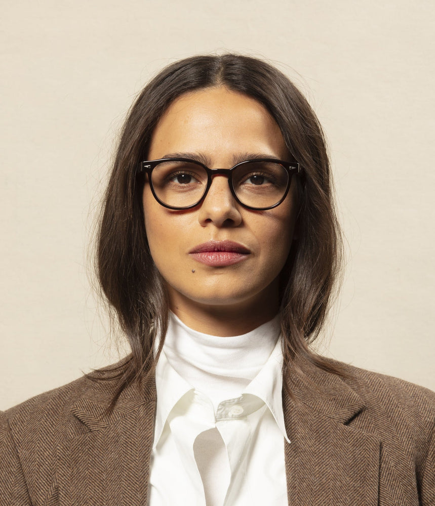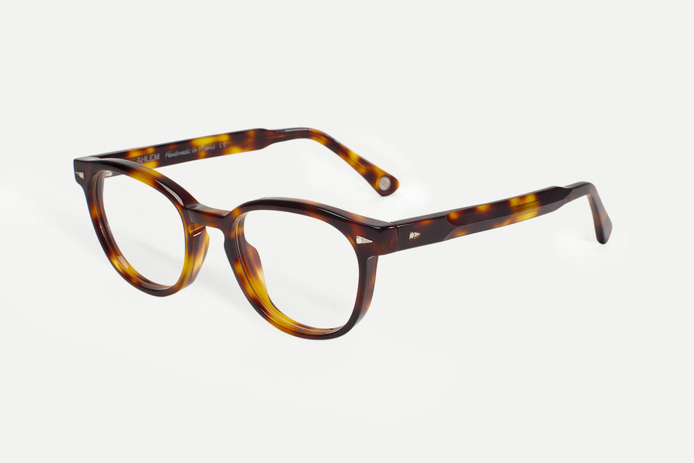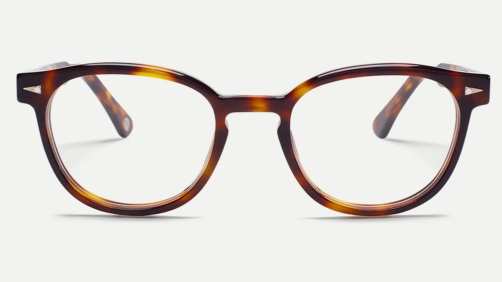 Classic unisex round eyeglasses with a warm tortoiseshell acetate frame featuring a traditional P3 round silhouette. The frame has a medium thickness with subtle angular details at the temples. The refined saddle bridge and curved temple arms create a comfortable, balanced fit. The tortoiseshell pattern shows rich honey and amber tones throughout the frame. Small metallic arrow accents add a subtle decorative touch at the temple hinges.