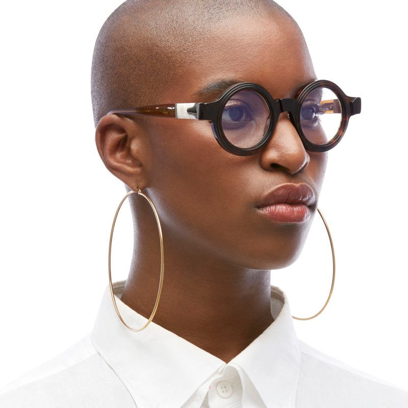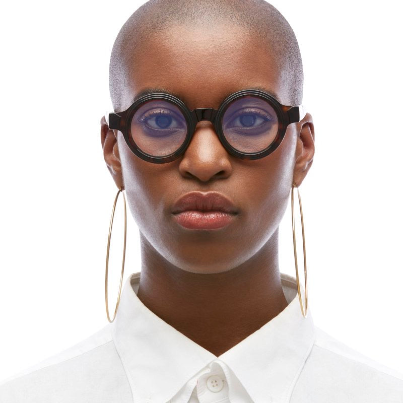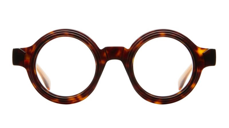 These are striking oversized round glasses featuring a bold tortoiseshell acetate frame with a pronounced thickness. The frame has a distinctive retro-inspired circular shape with a substantial profile that makes a strong statement. The tortoiseshell pattern shows beautiful variations of amber and dark brown tones. The glasses have a vintage intellectual aesthetic while maintaining a contemporary edge through their exaggerated proportions and chunky build. The saddle bridge adds to their classic appeal while providing comfortable weight distribution.
