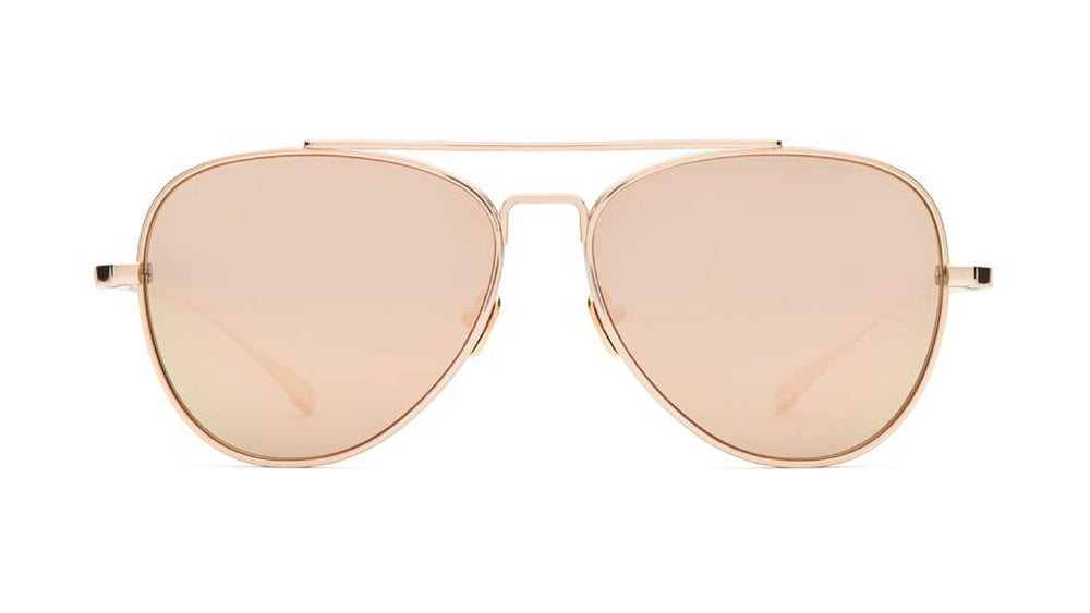 These elegant aviator sunglasses feature a luxurious rose gold metallic finish throughout the frame, with matching mirrored rose gold lenses creating a sophisticated monochromatic look. The classic teardrop-shaped lenses are complemented by slim metallic framework and delicate nose pads, offering a lightweight and refined aesthetic. The design maintains the timeless aviator silhouette while incorporating modern elements through its contemporary color palette and mirror finish, making it a versatile accessory suitable for both casual and formal occasions.