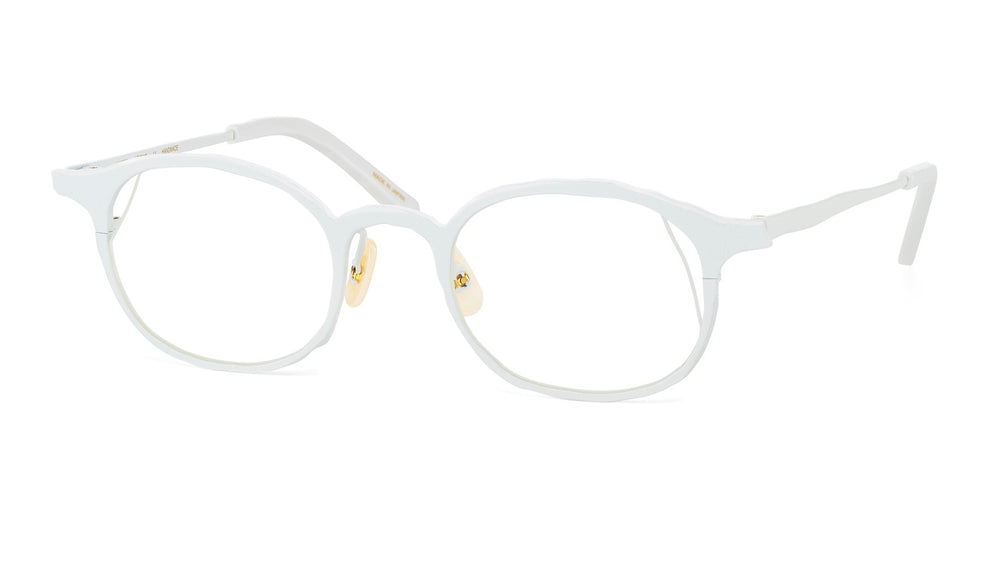 Minimalist and sophisticated Japanese design featuring a delicate white metal frame with a modern sculptural quality. The frame has subtle architectural elements with clean lines and excellent craftsmanship. The temple arms smoothly transition from the front frame, creating an elegant silhouette. The lightweight construction and nose pads ensure comfortable wearing.