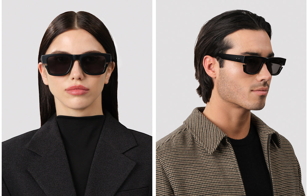 A luxurious pair of DITA SEKTON Limited Edition sunglasses featuring a bold, chunky square frame design in glossy black acetate. The substantial frame is complemented by gradient grey lenses and elegant gold-tone metal temple arms, creating a sophisticated contrast. The design showcases a contemporary interpretation of classic eyewear with its architectural approach to the thick frame construction and clean lines. The saddle bridge adds comfort while maintaining the bold aesthetic of these premium sunglasses.