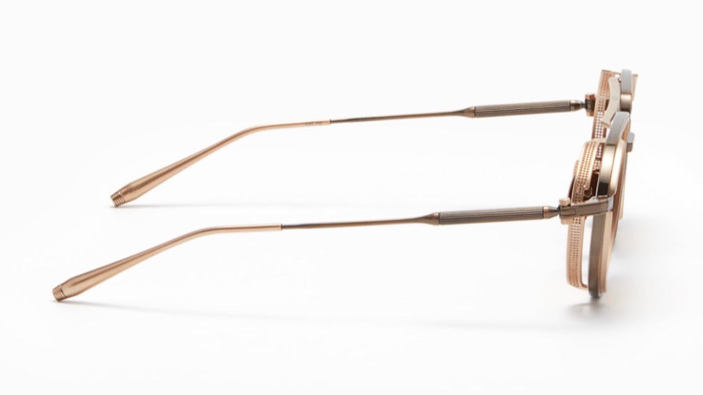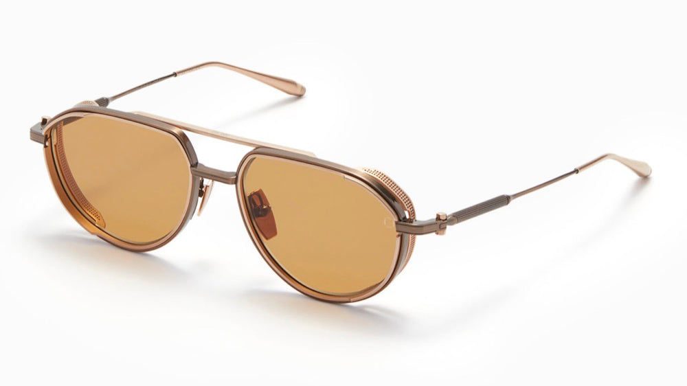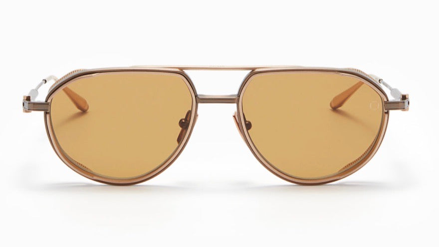 A sleek and sophisticated aviator-style frame with a refined bronze metallic finish throughout. The sunglasses feature a distinctive double bridge design with adjustable nose pads for comfort. The lenses are a warm brown tint that complements the metallic frame. These sunglasses blend classic aviator styling with modern refinements, offering a premium look suitable for both casual and formal wear. The thin metal construction gives them a lightweight, elegant appearance while maintaining durability.