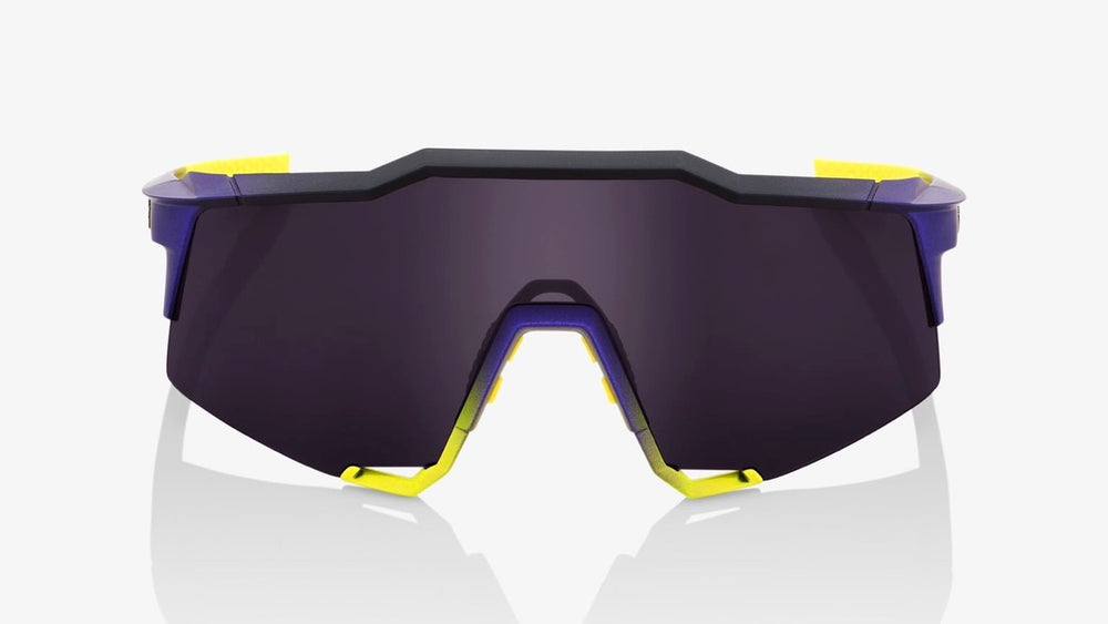 Sleek and aggressive sport sunglasses with a shield-style single lens design. The frame features a bold blue and yellow color combination with contemporary styling. The wraparound shield lens provides excellent coverage and protection. The design includes ventilation features and rubber nose pads for secure fit during athletic activities. The oversized lens and modern aesthetics make these ideal for cycling, running and other outdoor sports. The glasses have a distinctive angular top line and streamlined profile typical of performance eyewear.