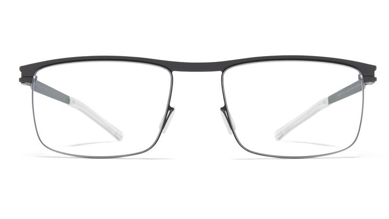 Sleek and minimalist rectangular metal frames featuring a thin profile with an industrial-modern aesthetic. The frames showcase clean lines with a matte black finish on the front and contrasting metallic grey temple arms. The lightweight construction and adjustable nose pads ensure comfort, while the contemporary design makes these glasses suitable for both professional and casual wear. The frames demonstrate excellent build quality with precise engineering visible in the hinges and connection points.