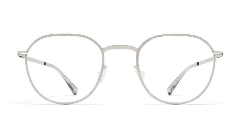 These are elegantly minimal round metal frames with a sophisticated brushed silver finish. The design features a delicate wireframe construction with thin temple arms and nose pads. The understated metallic texture adds a subtle luxurious touch while maintaining a lightweight, contemporary aesthetic. The frames have a refined, intellectual appeal that would suit both casual and formal settings.