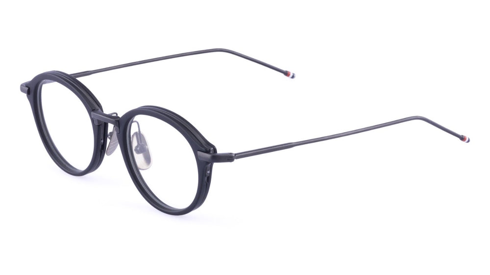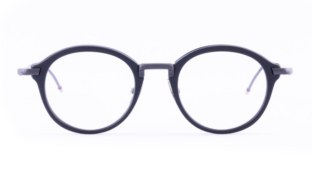 Classic round frames featuring a sophisticated matte black finish with sleek metal construction. The design combines vintage inspiration with modern minimalism, featuring thin temple arms and a refined nose bridge. The frames have a professional yet fashionable appearance suitable for both casual and formal settings.