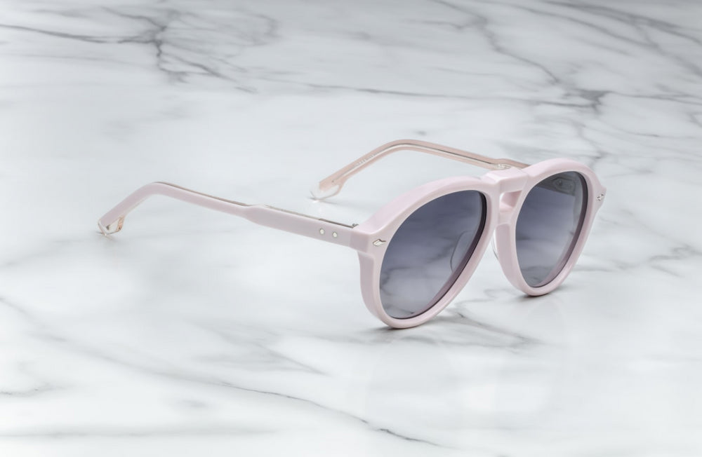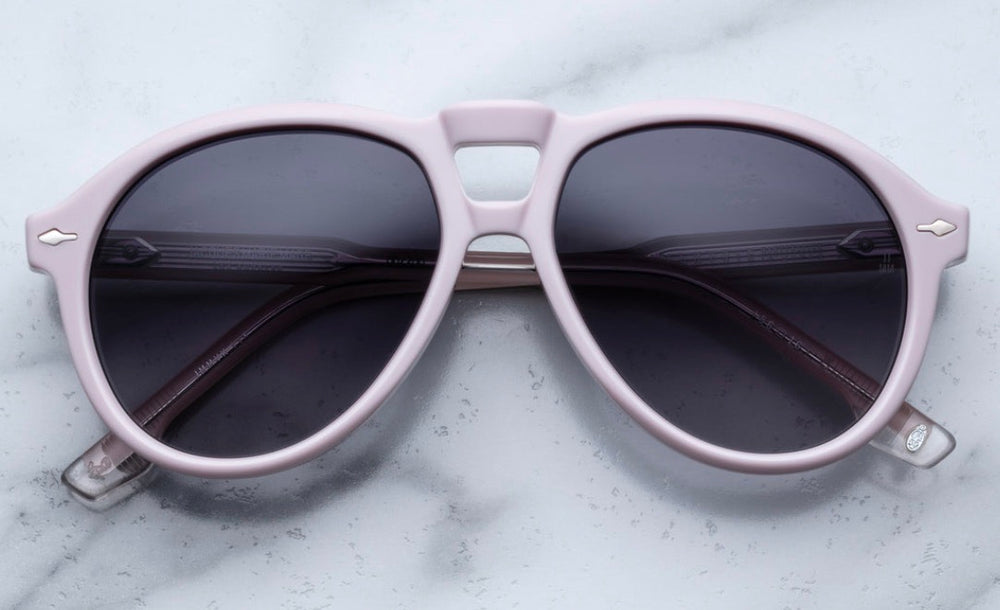 Elegant pink aviator-style sunglasses with a retro-modern aesthetic. Features a matte finish on the plastic frame with a distinctive double-bridge inspired design. The frame has clean lines and subtle detailing at the temple hinges. Dark gradient lenses provide excellent sun protection while maintaining a sophisticated look. The overall design balances vintage appeal with contemporary styling, making it a versatile accessory for any outfit.